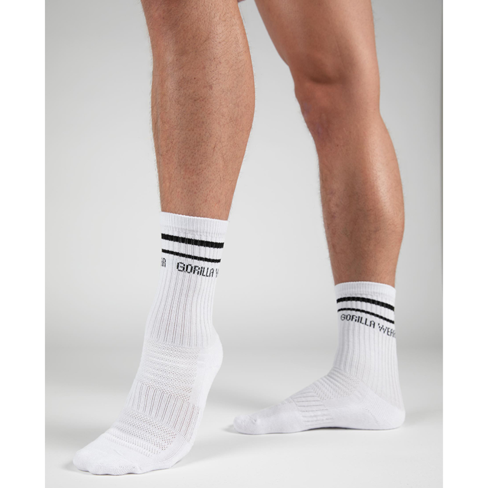Удобные носки Gorilla Wear Crew Socks подходят для повседневного использования и тренировок. Они изготовлены из смеси хлопка и эластана, что делает их эластичными и мягкими на ощупь. Ребристая лента вокруг средней части стопы удерживает носки на месте и предотвращает их соскальзывание в обуви. Благодаря дышащим отверстиям носки отводят пот и сохраняют ноги сухими. Носки с логотипом Gorilla Wear, чтобы показать, что вы являетесь членом команды #TEAMGORILLAWEAR!