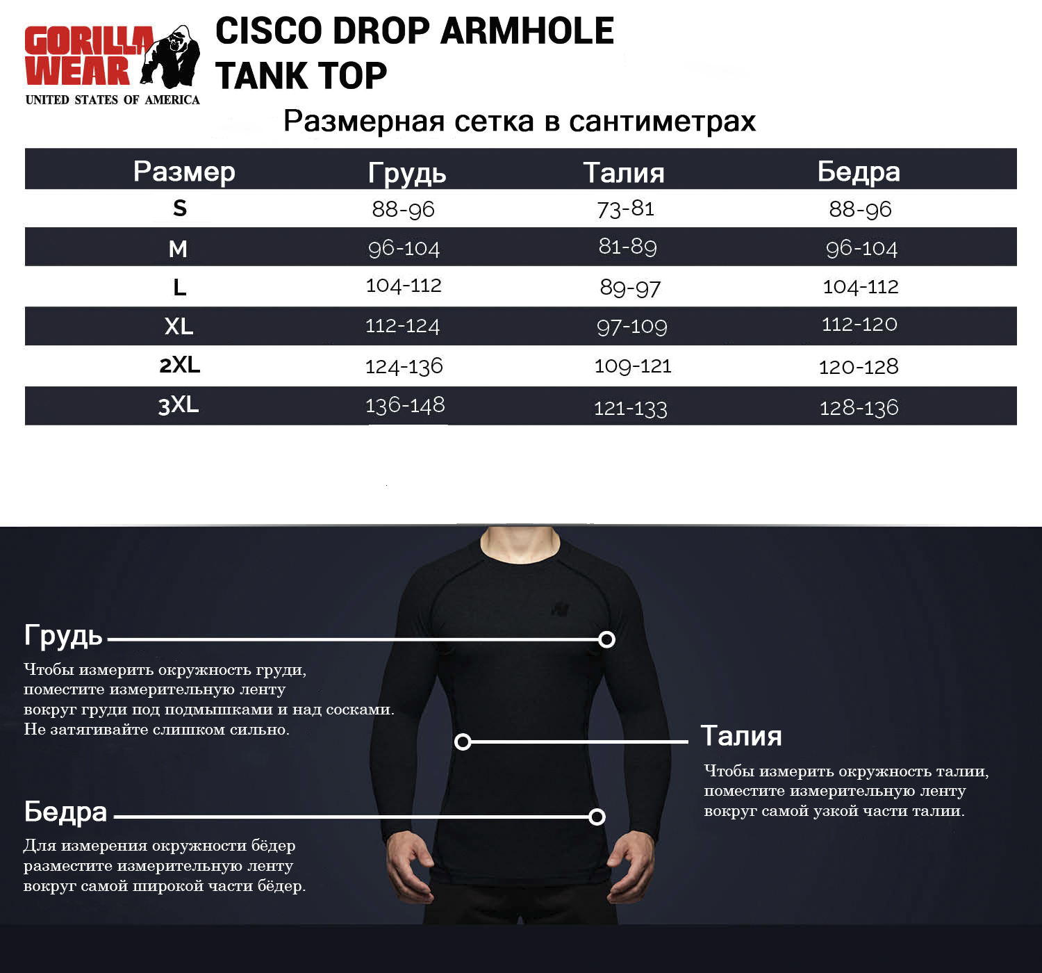Начиная с 80-х годов Gorilla Wear - легендарный всемирно известный американский бренд, который производит одежду для бодибилдинга и фитнеса «для мотивированных». Вся одежда в стиле GORILLA WEAR специально предназначена для требовательных спортсменов во всем мире. Эта одежда уникальна, она идеально садится по фигуре, она не подведет тебя. Она даст тебе возможность выглядеть индивидуально и спортивно, именно так, как ты хочешь.