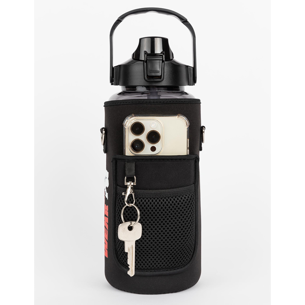 Завдяки місткому об'єму 2 л у вас завжди буде під рукою достатня кількість води, де б ви не знаходилися. Завдяки міцному шнурку і стильному знімному рукаву ви можете без зусиль брати пляшку з собою куди завгодно. Рукав оснащений зручними кишенями для зберігання телефону, ключів та інших предметів першої необхідності, тож ви завжди будете організовані. Пляшка для води оснащена кришкою з широким отвором і знімною соломинкою, що полегшує наповнення і очищення. Отвір оснащений зручною зсувною кришкою, завдяки чому пляшка захищена від протікання і безпечна для носіння в сумці. Виготовлена з високоякісного матеріалу, пляшка для води з рукавом об'ємом 2 л стане незамінною річчю для тих, хто серйозно ставиться до гідратації. Примітка: цю пляшку не можна мити в посудомийній машині; будь ласка, чистіть її вручну.