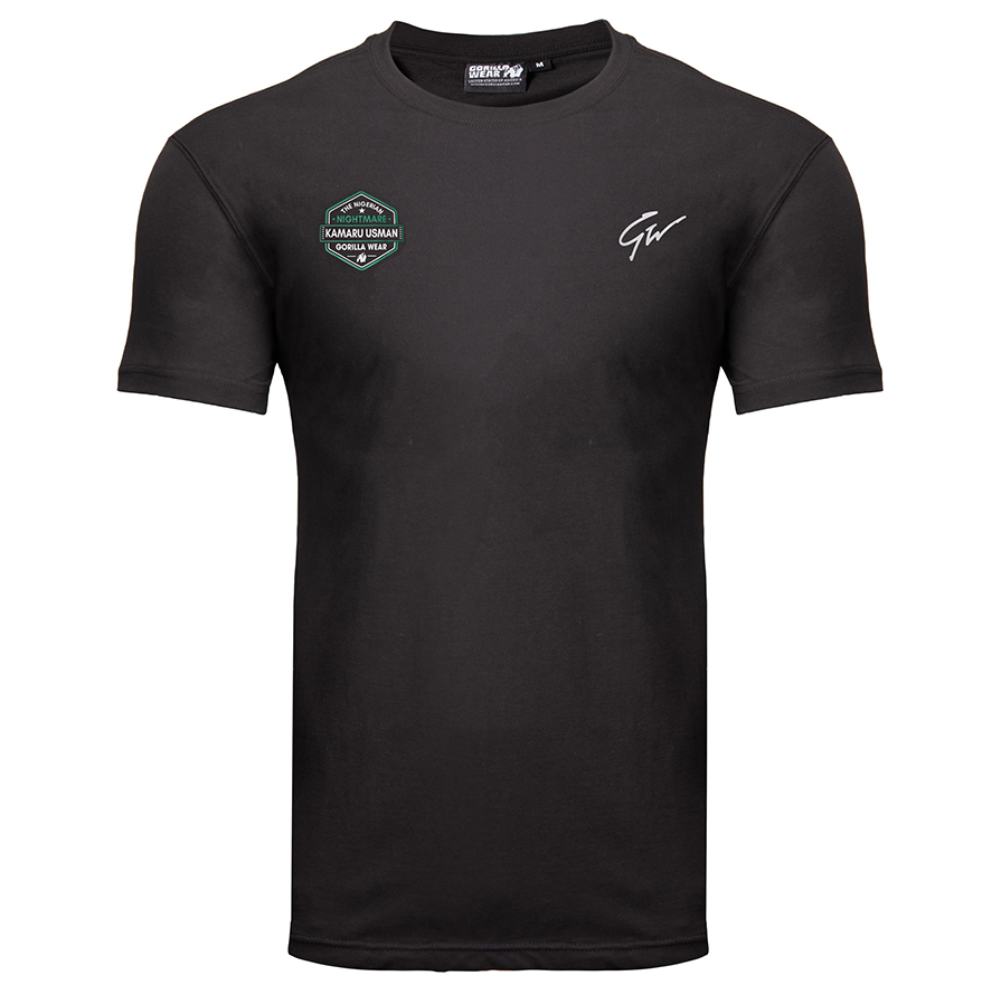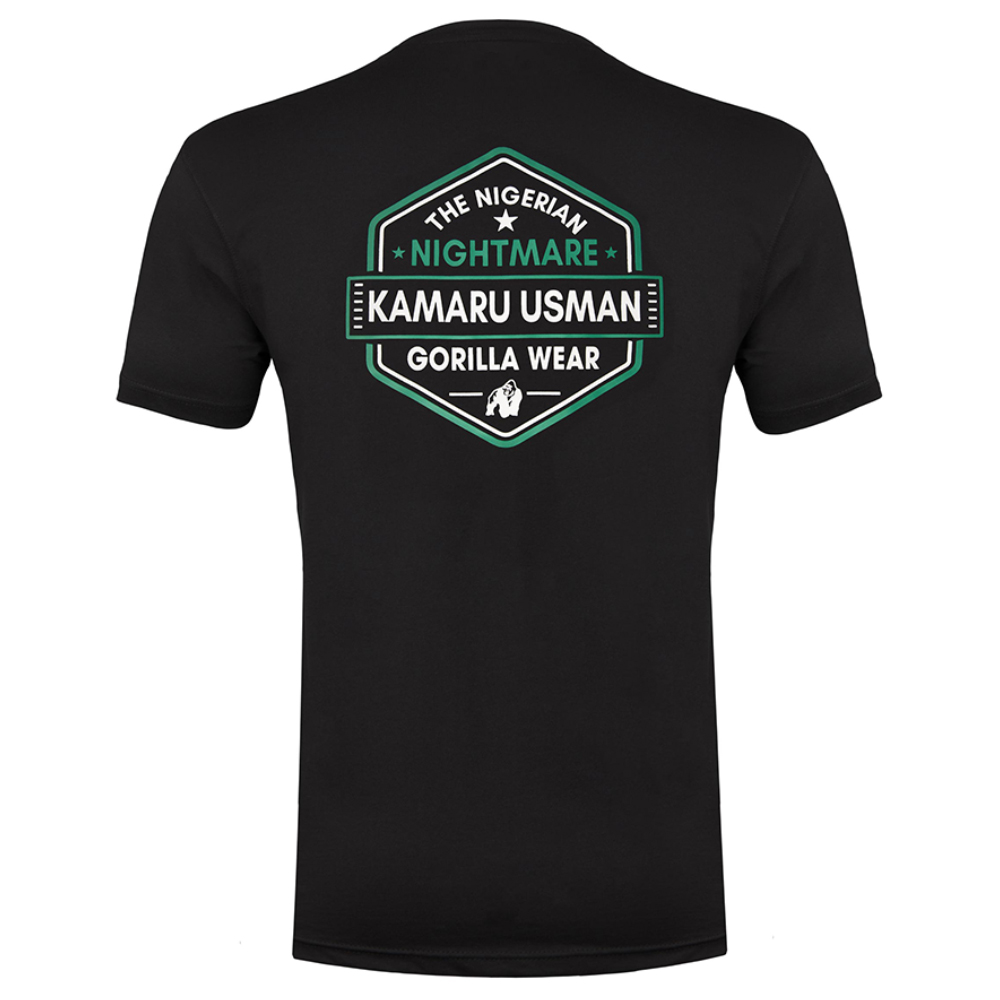Камару Усман нині є світовим рекордсменом у своїй ваговій категорії на найбільшому у світі змаганні з боїв. Тому недаремно його називають Нігерійським Кошмаром. Саме тому під час створення цієї футболки нас надихнув шановний спортсмен #TEAMGORILLAWEAR: Камару Усман. Kamaru Usman X Gorilla Wear логотип на спині. Передній логотип GW та логотип Камару Усмана Всі логотипи 3D/гумові. Тонкий, еластичний крій