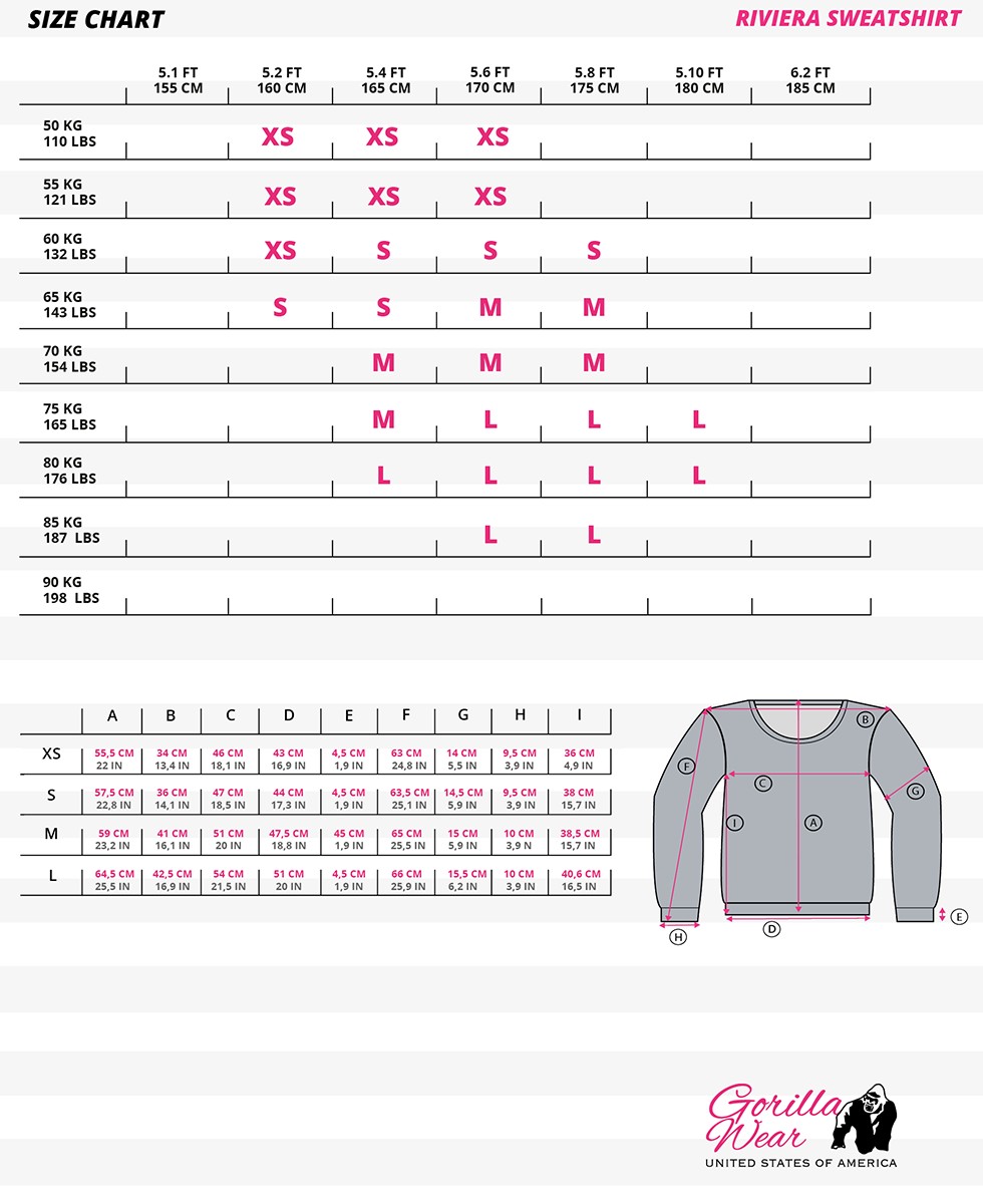 Цей світшот Riviera зшитий з міцних тканин, яка підлаштується під ваші параметри і добре сяде. Він доступний у чотирьох світлих відтінках, і ви можете підібрати будь-який лук із ним. Він також має класичне лого Gorilla Wear спереду. Які відтінки ти вибереш?