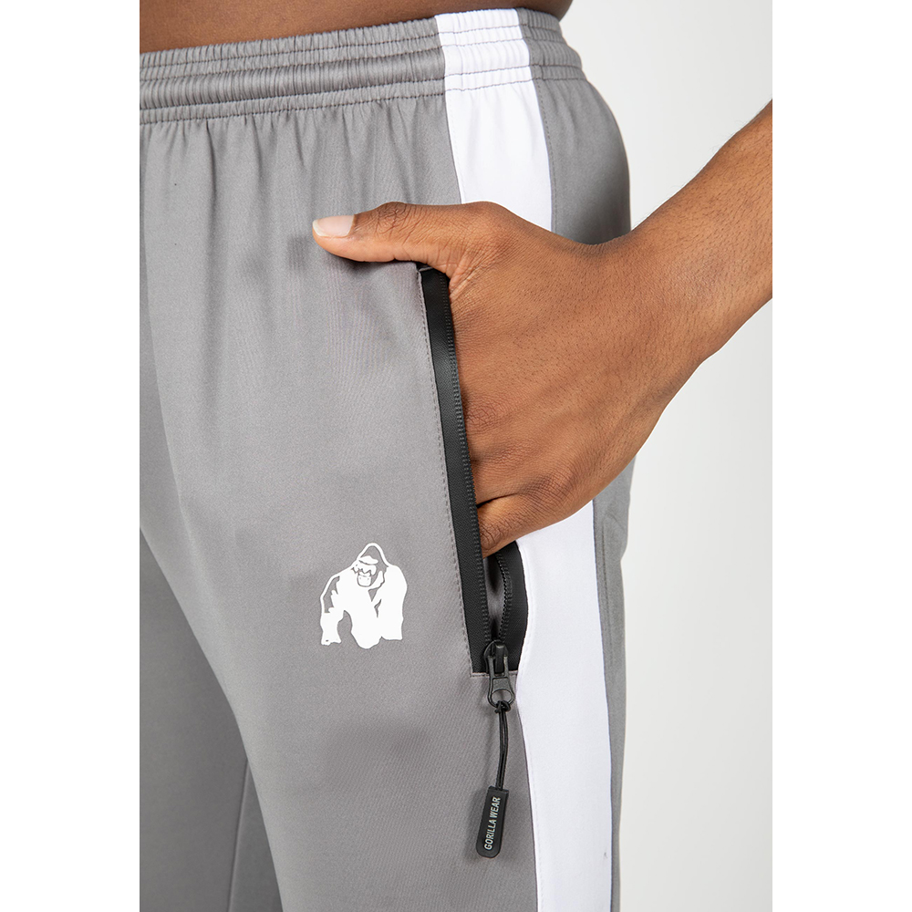 Штани Benton Track Pants ідеально підходять як для тренувань, так і для вихідних днів, тому ви матимете чудовий вигляд як у спортзалі, так і поза ним. Ці штани виготовлені з еластичної тканини та мають звужений крій. Завдяки блискавці на щиколотках штани можна легко одягати та знімати. Вони мають дві передні кишені на блискавці та задню кишеню. З боків - білі смужки та впізнаваний логотип Gorilla Wear, нанесений методом трафаретного друку. Доступні в чорному та сірому кольорах.