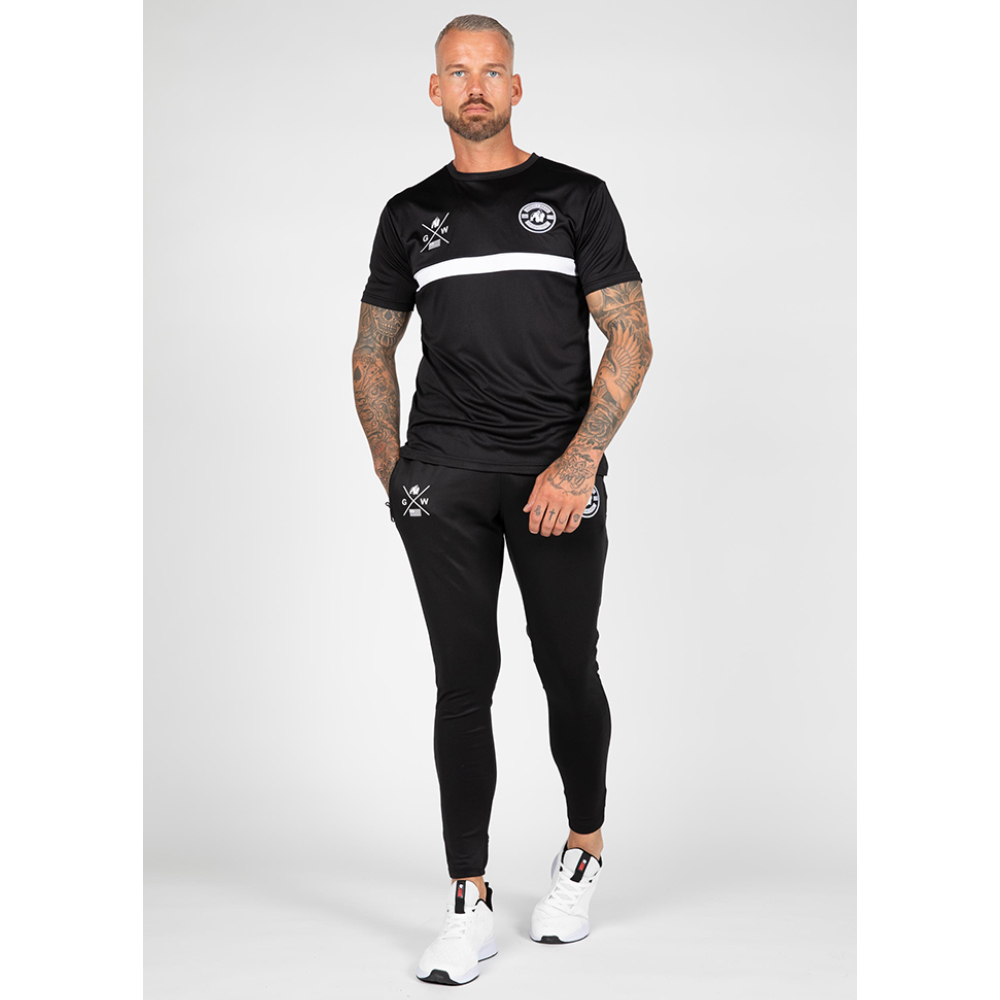 Штани Vernon призначені для підвищення вашої продуктивності. Від моменту, коли ви надягаєте їх, ви відчуєте ідеальне поєднання комфорту і гнучкості. Наш спеціальний матеріал забезпечує необхідну еластичність для відмінних результатів у будь-якому вправі. Внутрішня регульована гумка дозволяє налаштувати посадку. Зі спеціальними кишенями на блискавці для безпечного зберігання і логотипами на обох стегнах, ці вузькі штани поєднують в собі стиль і функціональність безперешкодно. Ідеально поєднується з іншими частинами набору Vernon.