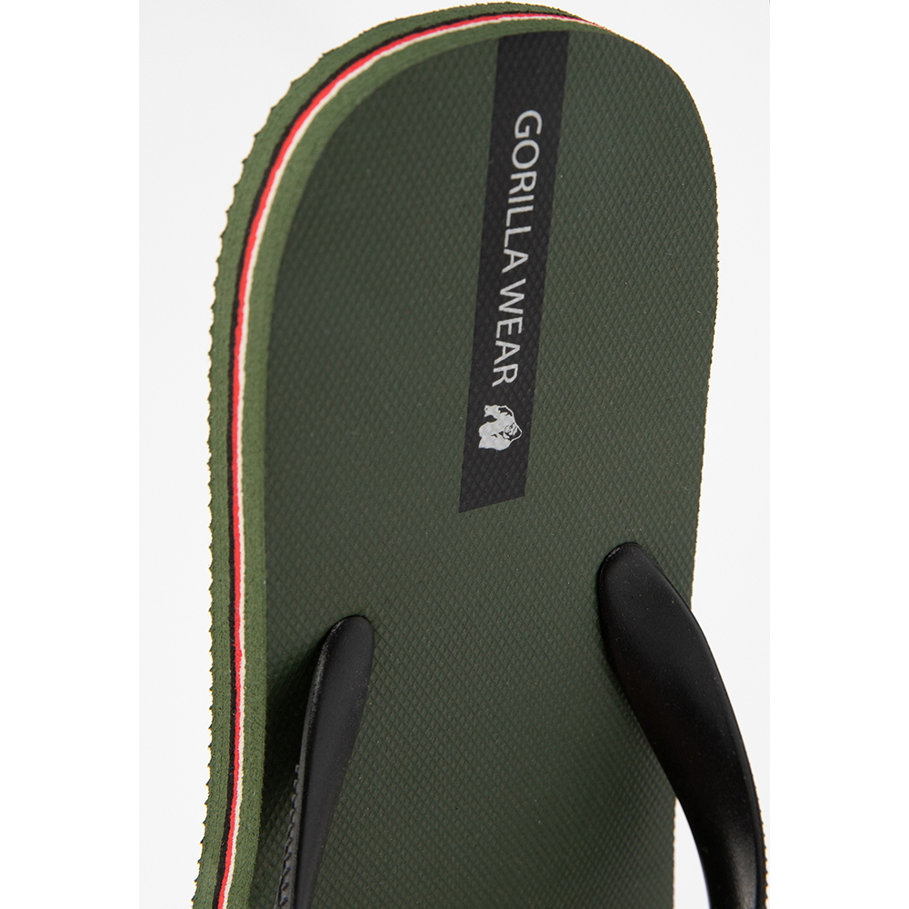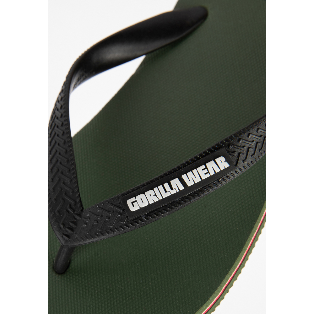 В'єтнамки унісекс Kokomo ідеально підходять для літніх днів. Ви щойно вийшли з тренажерного залу або збираєтеся на пляж? Коли вони вам знадобляться, ви не знаєте, але вони завжди можуть бути з вами. Ці легкі в'єтнамки мають дуже зручну підошву з етиленвінілацетату товщиною 1,5 см. Вони мають гарний вигляд завдяки кольоровому контуру і логотипам Gorilla Wear на ремінці та устілці. Вони водонепроникні, а завдяки ребристій підошві вони не ковзають. В'єтнамки Kokomo випускаються в хакі та чорному кольорах. Будьте готові до літа!