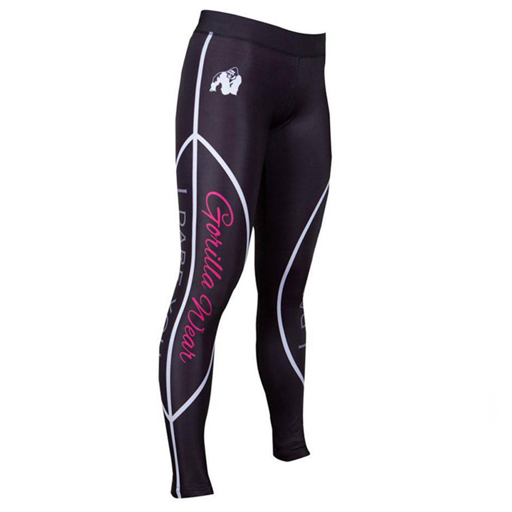 Ти пишаєшся своєю фігурою? Покажи свої ніжки з легінсами Gorilla Wear Leggings! З білими вертикальними смугами вздовж обох ніг, тому твої ніжки виглядають довшими. Гладка тканина, гарне поєднання еластатану та поліестеру ідеально підійде вашому тілу. Білі акценти та рожевий логотип Gorilla Wear надають штанам жіночного та спортивного вигляду.